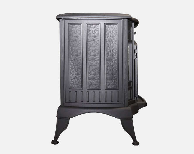 Het rendement van deze gietijzeren houtkachel is 75%